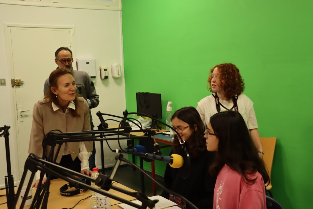 Enfin, le parcours s’est achevé au studio de la Webradio (Bâtiment G). Dans cet espace dédié à l’Éducation aux Médias et à l’Information (EMI), de jeunes reporters de CM1 et du club radio ont eu le privilège d’interviewer Madame la Directrice générale de l’AEFE. Un exercice grandeur nature pour développer l’esprit critique et l’oral.